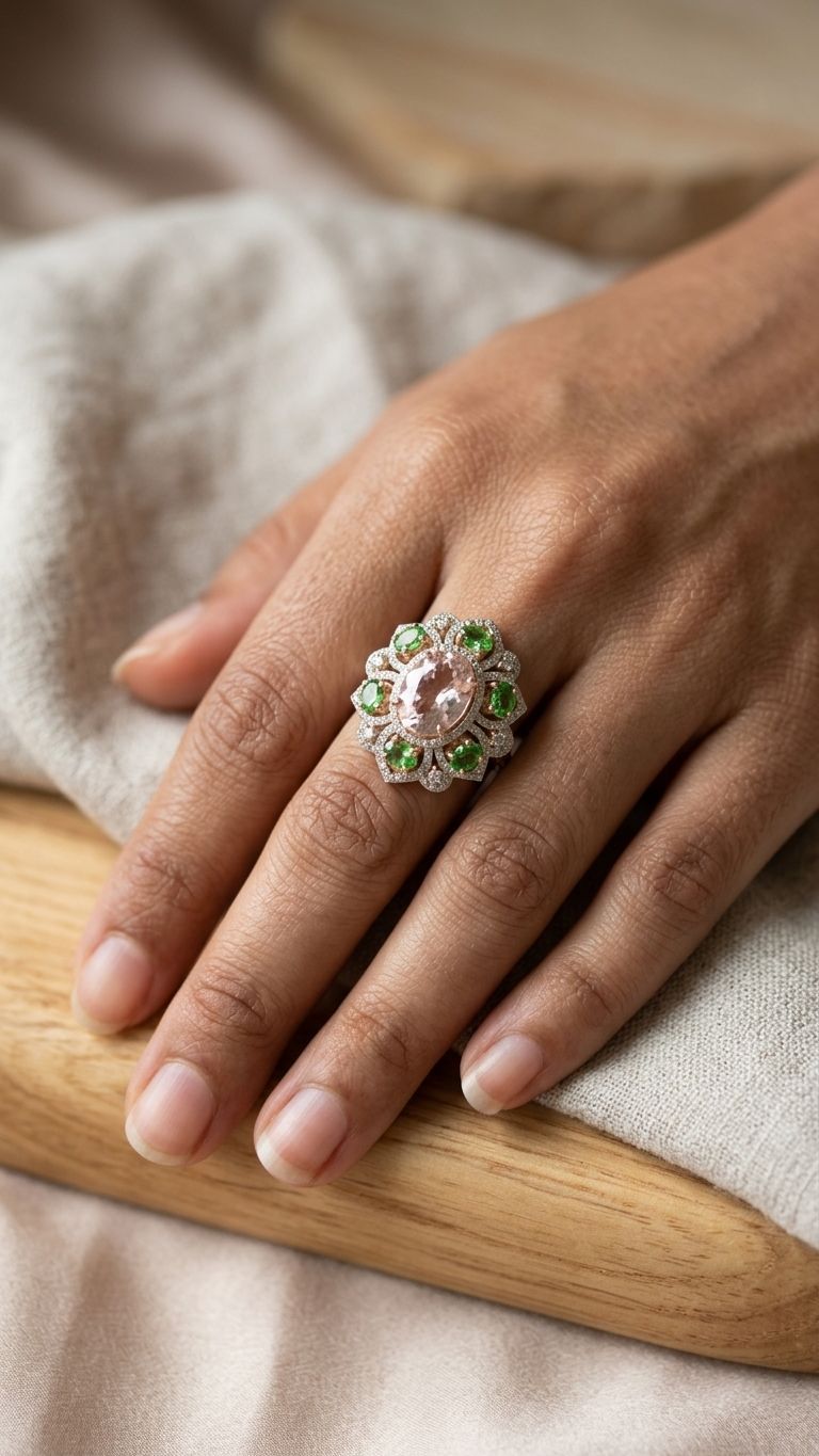 Morganite Stone Tsavorite Ring