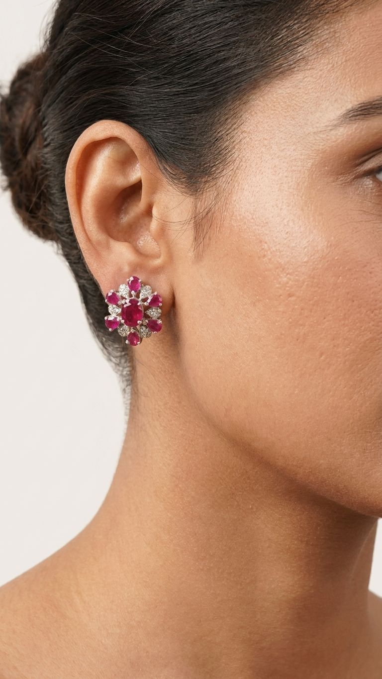 This Ruby Stud is handcrafted in hallmarked 92.5 sterling silver, set with a natural certified ruby gemstone (0.28 ct). Weighing 4.684g, it is part of our Studs collection, made at our Jaipur workshop by skilled artisans who carry forward generations of traditional silversmithing technique.